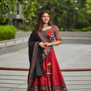 Maroon Cotton Satin with Ajrakh Kaatha embroidery