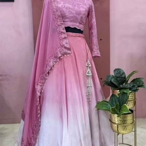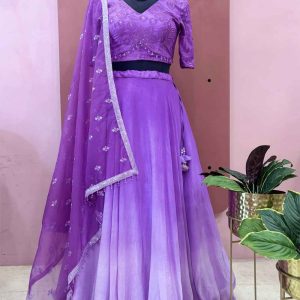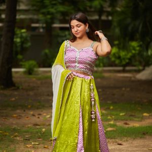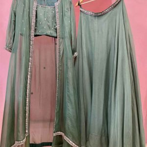 Jade Green Soft Organza Lehenga with Handwork Embellished Crop top and Shrug